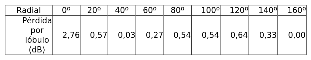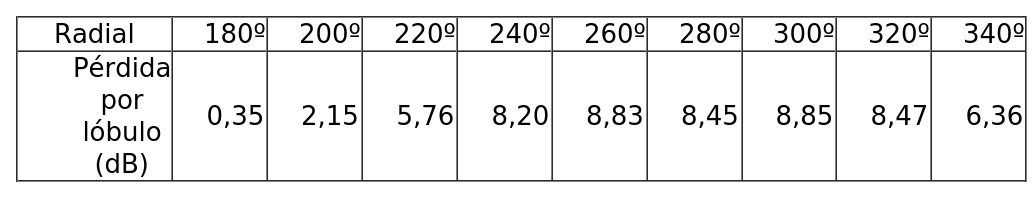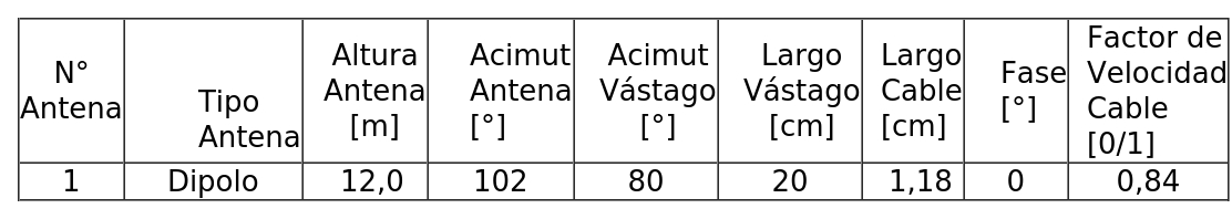 - Arreglo de antenas, de acuerdo al siguiente cuadro: