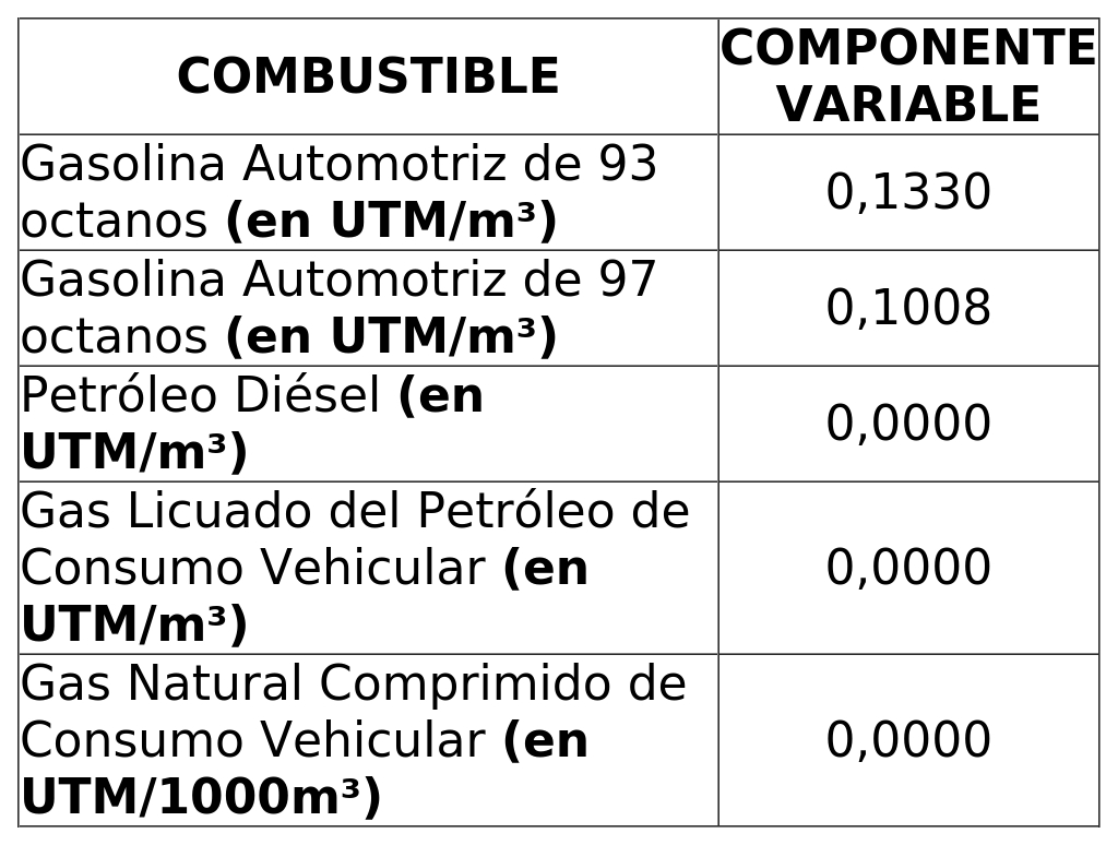 DETERMINA EL COMPONENTE VARIABLE PARA EL CÁLCULO DEL IMPUESTO ESPECÍFICO ESTABLECIDO EN LA LEY N° 18.502