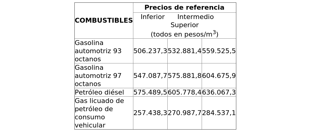 DETERMINA PRECIOS DE REFERENCIA PARA COMBUSTIBLES DERIVADOS DEL PETRÓLEO