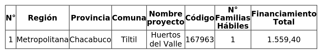 4. Los recursos comprometidos en el resuelvo 2. de la presente resolución, para el proyecto seleccionado en el llamado dispuesto por resolución exenta Nº 255 (V. y U.), de 2025, se resumen en el siguiente cuadro, incluyendo la suma total de familias beneficiadas, las Unidades de Fomento comprometidas, incluidos sus respectivos Servicios de Asistencia Técnica, Fiscalización Técnica de Obras y aranceles del Conservador de Bienes Raíces, y el saldo de recursos incluyendo procesos de selección anteriores: