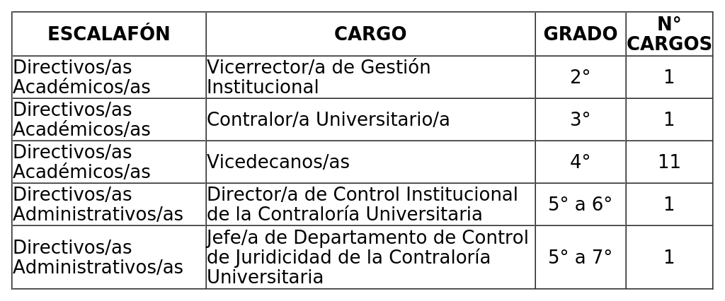 4. La estimación del suscrito en cuanto a que, atendido el carácter de autoridades universitarias que el nuevo Estatuto de la Universidad confiere a los vicerrectores/as, corresponde aumentar el grado de los respectivos cargos de 3° a 2°.