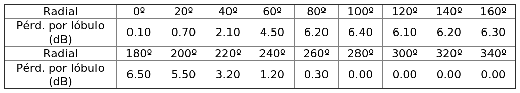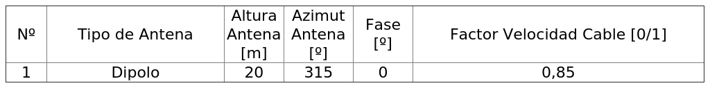 - Arreglo de antena de acuerdo a la siguiente tabla: