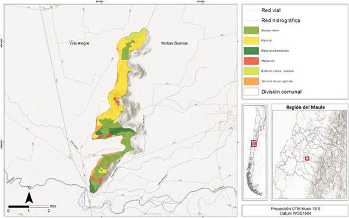 19.- Que, en lo referido a la cobertura de suelos, el cordón montañoso cuenta con 213,4 hectáreas de bosque nativo (34,3%) y 277 hectáreas de matorral (44,5%), sumando más del 70% de la superficie total. A lo anterior, se suman 47,7 hectáreas de matorral arborescente (7,7%), además de plantaciones forestales (4,2%), rotación de cultivo pradera (3,5%) y terrenos de uso agrícola (35,3%). Esta configuración refuerza la relevancia de implementar estrategias de conservación y uso sustentable, asegurando la protección de los ecosistemas mediterráneos y la biodiversidad que ellos sostienen.