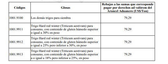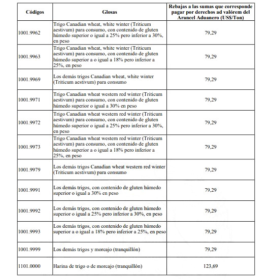 APLICA REBAJAS DE DERECHOS DE ADUANA PARA LA IMPORTACIÓN DE TRIGO Y HARINA DE TRIGO O DE MORCAJO (TRANQUILLÓN)