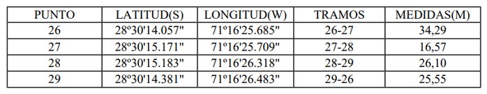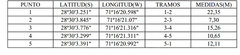 El sector 1 - Tramo 1 tiene una superficie de 219,63 m² y sus coordenadas geográficas, tramos y medidas son las siguientes: