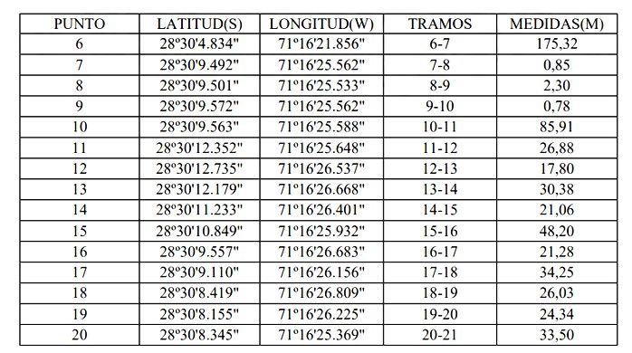 El sector 1 - Tramo 3 tiene una superficie de 673,21 m² y sus coordenadas geográficas, tramos y medidas son las siguientes: