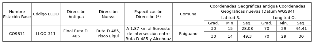 1. Autorízase a la concesionaria para modificar la dirección y coordenadas geográficas de una (1) estación base, según se indica a continuación: