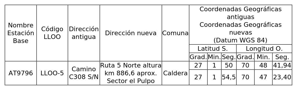 1. Autorízase a la concesionaria para modificar la dirección y coordenadas geográficas de una (1) Estación Base, según se indica a continuación: