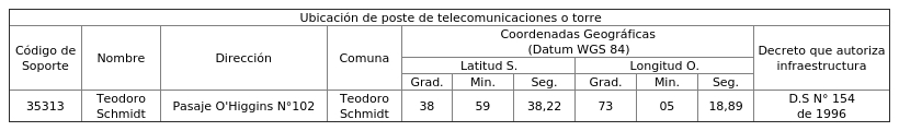 2. La infraestructura soporte de sistemas radiantes se detalla a continuación: