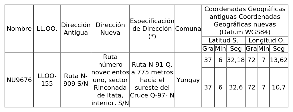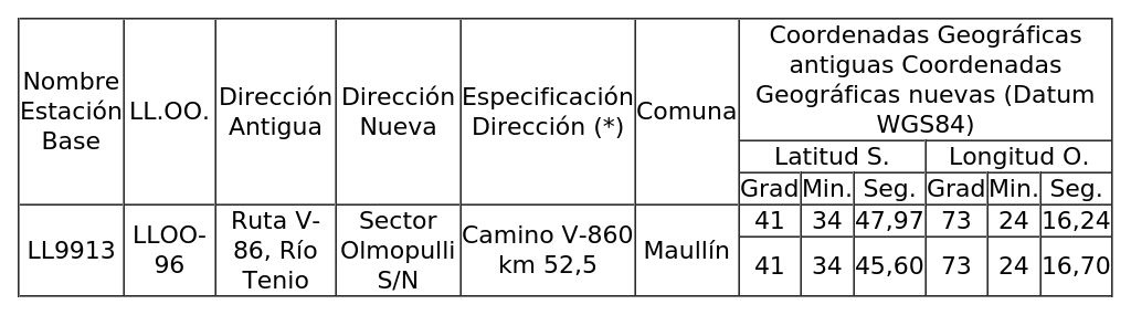 2. Para el ingreso Subtel N° 204.552/2022: Autorízase a la concesionaria para modificar la dirección y coordenadas geográficas de una (1) Estación Base, según se indica a continuación: