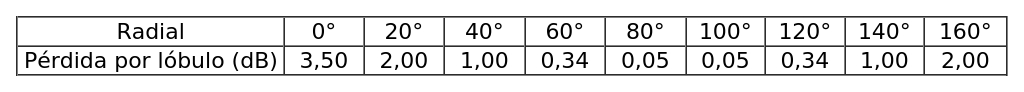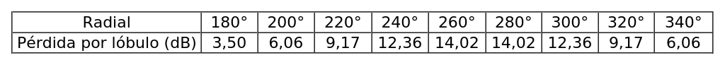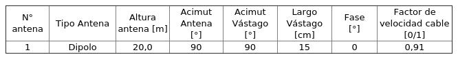- Arreglo de antenas, de acuerdo al siguiente cuadro: