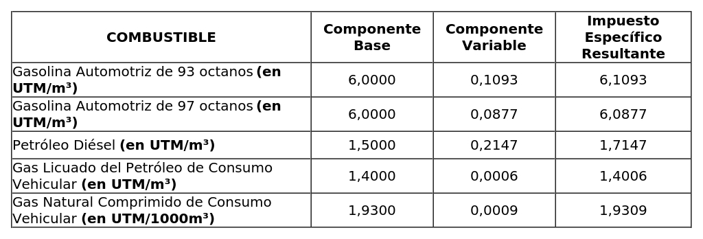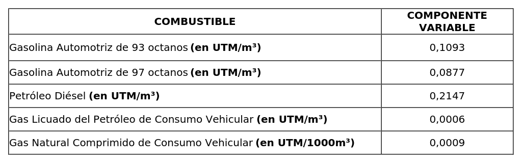 DETERMINA EL COMPONENTE VARIABLE PARA EL CÁLCULO DEL IMPUESTO ESPECÍFICO ESTABLECIDO EN LA LEY N° 18.502