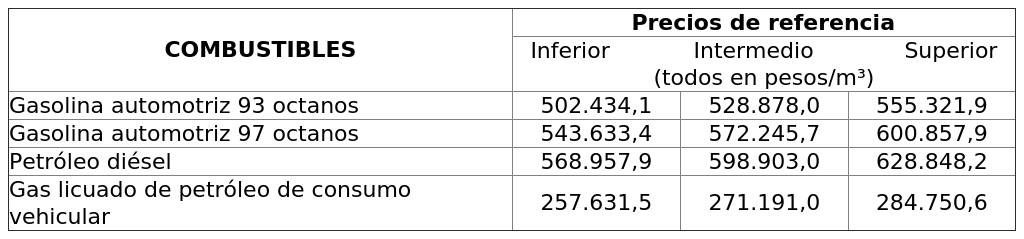 DETERMINA PRECIOS DE REFERENCIA PARA COMBUSTIBLES DERIVADOS DEL PETRÓLEO
