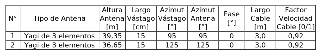 - Tipo de antenas : Yagi de 3 elementos.
