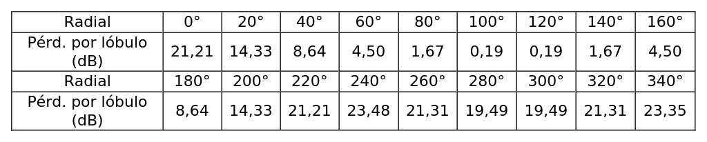 - Arreglo de antenas de acuerdo a la siguiente tabla: