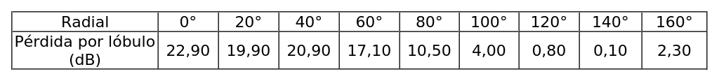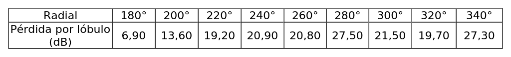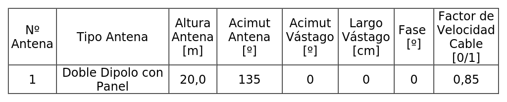 - Arreglo de antenas, de acuerdo al siguiente cuadro:
