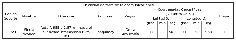 1. Autorízase a la concesionaria para instalar, operar y explotar una (1) torre de telecomunicaciones, destinada a soportar sistemas radiantes, según se indica a continuación:
