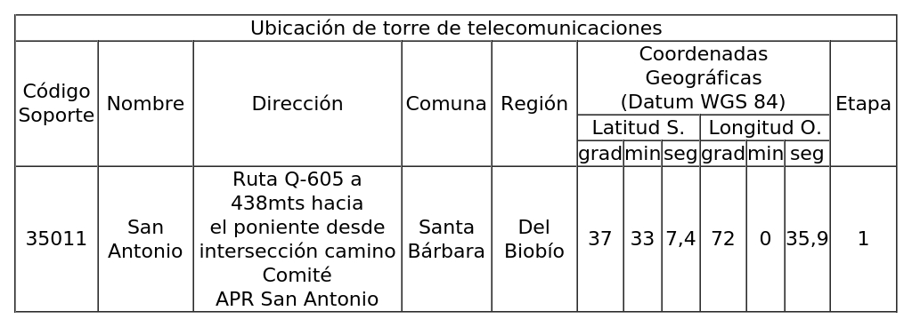 1. Autorízase a la concesionaria para instalar, operar y explotar una (1) torre de telecomunicaciones, destinada a soportar sistemas radiantes, según se indica a continuación: