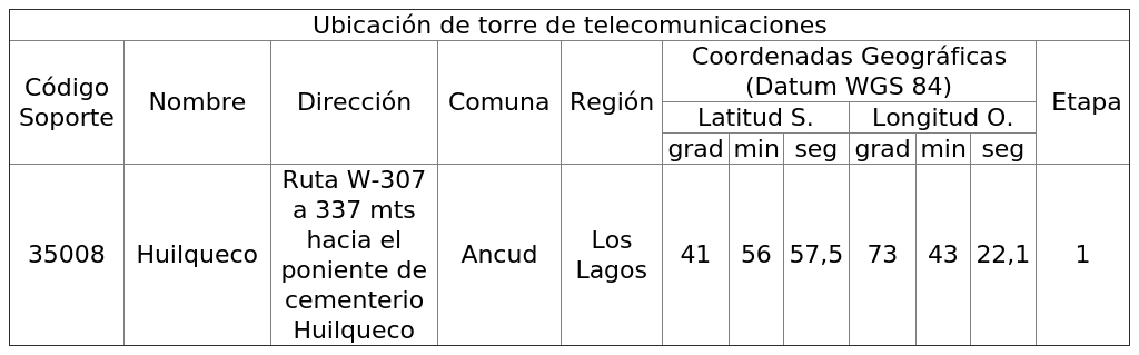 1. Autorízase a la concesionaria para instalar, operar y explotar una (1) torre de telecomunicaciones, destinada a soportar sistemas radiantes, según se indica a continuación:
