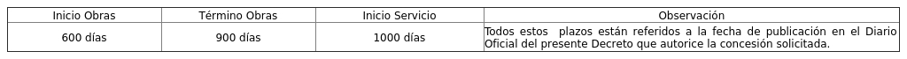 5. Los plazos de inicio y término de obras, y de inicio del servicio son los que a continuación se indican: