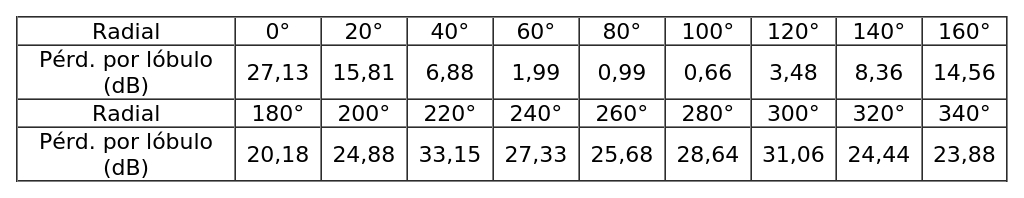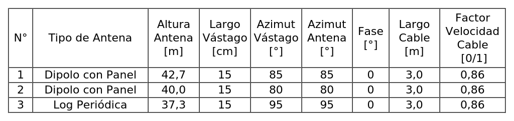 - Arreglo de antenas de acuerdo a la siguiente tabla:
