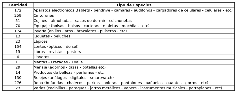 1. Declárase el abandono de los bienes muebles, que a continuación se detallan, que se encuentran depositados en Bodega de Abastecimiento, ubicado en Colón 1255, de la ciudad de Punta Arenas, proveniente del Aeropuerto Carlos Ibáñez del Campo. Se procederá a su pública subasta, si estos no fueran reclamados y retirados antes del remate por sus respectivos dueños.