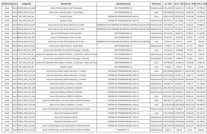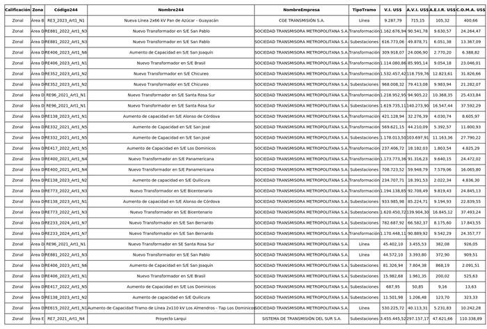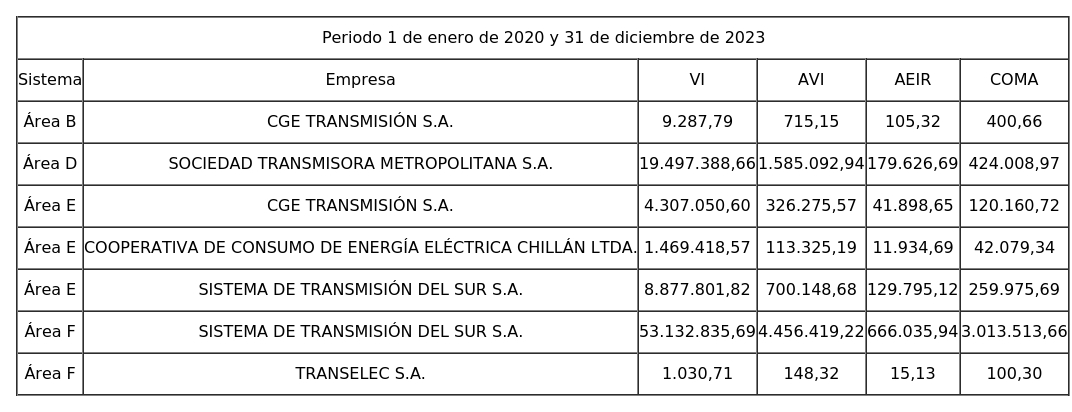 1. Valor anual de instalaciones de transmisión zonal por sistema de transmisión zonal, separado por cada propietario u operador, para el periodo entre el 1 de enero de 2020 y el 31 de diciembre de 2023.