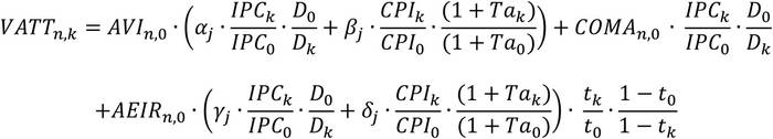 La fórmula de indexación aplicable a los valores, en dólares, de la suma de la anualidad del valor de inversión ("A.V.I."), los costos anuales de operación, mantenimiento y administración del tramo respectivo ("C.O.M.A.") y Ajustes por Efecto de Impuesto a la Renta ("A.E.I.R."), de los sistemas de transmisión zonal correspondientes al período comprendido entre el 1 de enero de 2020 y el 31 de diciembre de 2023, a fin de mantener su valor real durante el período de vigencia de las tarifas que se establecen en el presente decreto, es la que se muestra a continuación: