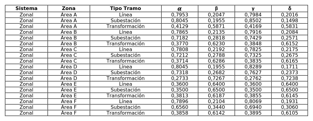 para cada uno de los sistemas zonales, son los siguientes: