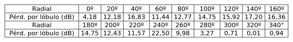 - Ganancia antena : 10,81 dBd de ganancia máxima.