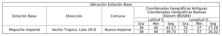 1. Autorízase a la concesionaria para rectificar las coordenadas geográficas, de una (1) Estación Base autorizada mediante decreto supremo del literal d) de los Vistos, como se indica a continuación.