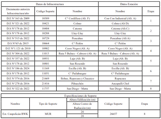 2.1. La infraestructura soporte de los sistemas radiantes, se indica a continuación: