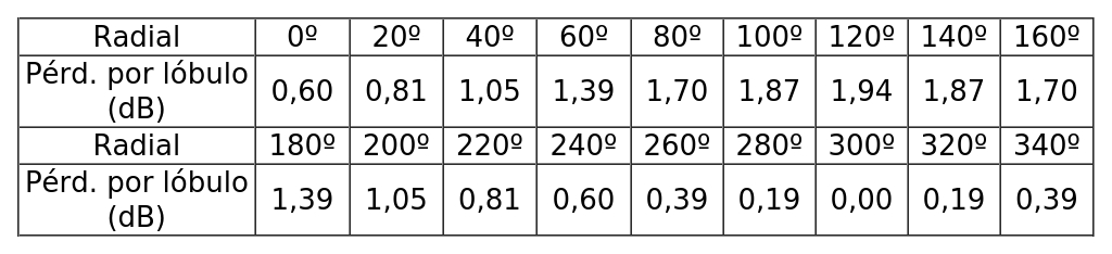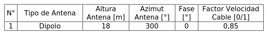 - Arreglo de antena de acuerdo a la siguiente tabla: