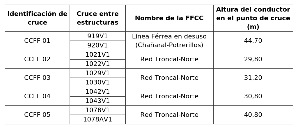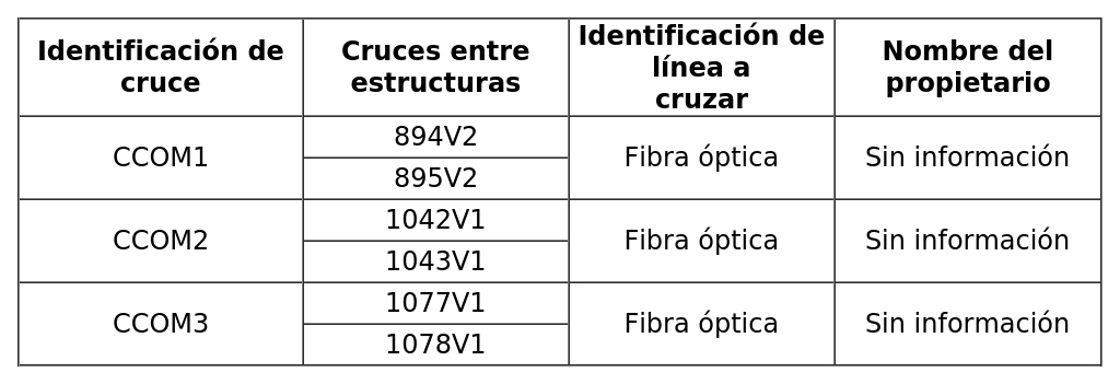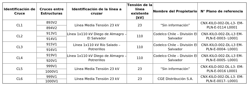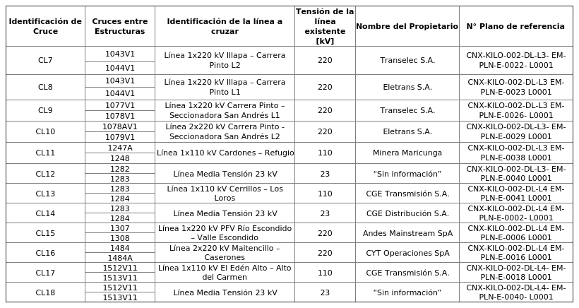 a. Cruce con líneas eléctricas existentes