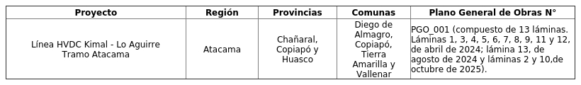 El Proyecto se ubica en la Región de Atacama, provincias de Chañaral, Copiapó y Huasco, comunas de Diego de Almagro, Copiapó, Tierra Amarilla y Vallenar.