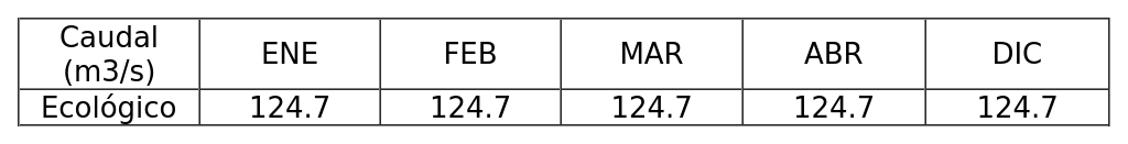 3. El titular de los derechos de aprovechamiento que se concesiona, deberá dejar pasar aguas abajo del punto de captación la siguiente distribución de caudales, expresados en metros cúbicos por segundo, para preservar el equilibrio ecológico del cauce: