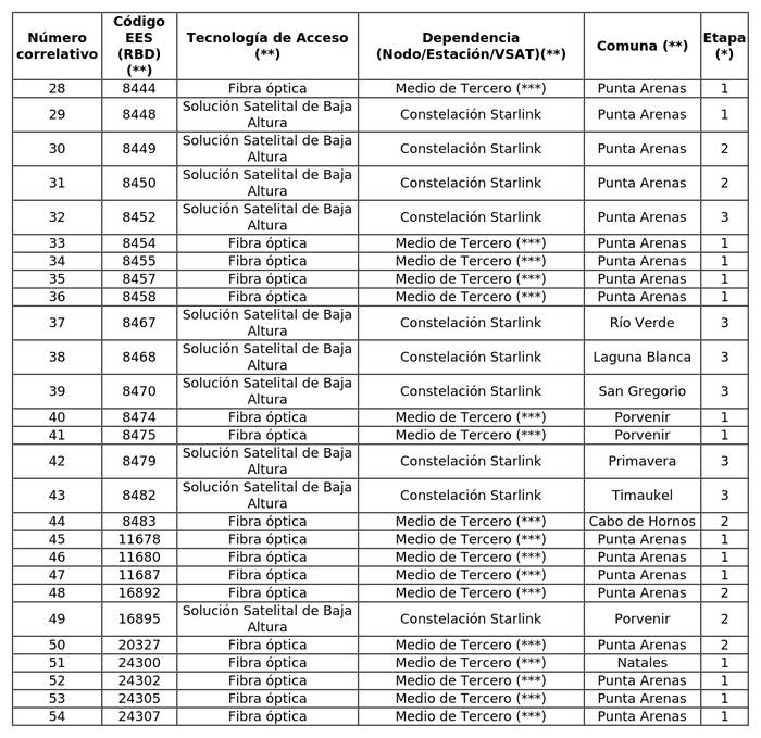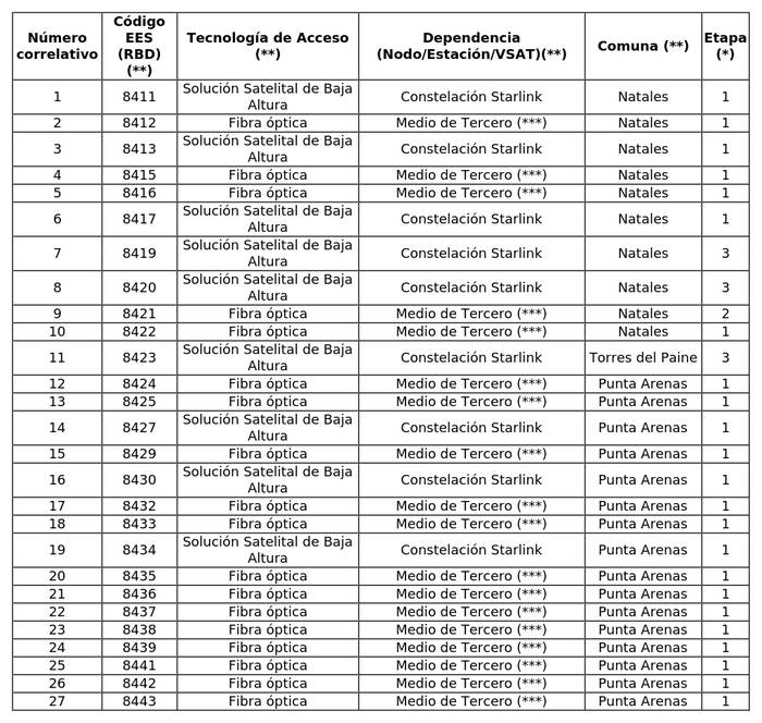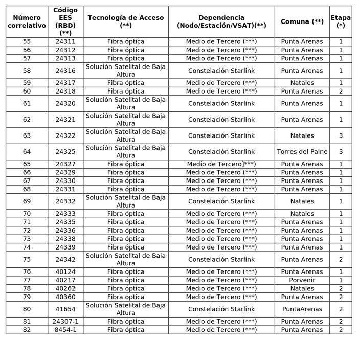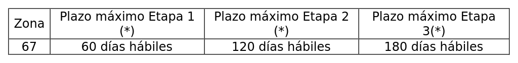 (*) El número de referencia a la Etapa corresponde a la fase en cuyo plazo máximo deberá prestarse el Servicio de Conectividad en los EES que pertenecen a la Zona 67 conforme a lo indicado en el resuelvo octavo de la resolución exenta Nº 2.480, de fecha 16.12.2025, de la Subsecretaria de Telecomunicaciones.