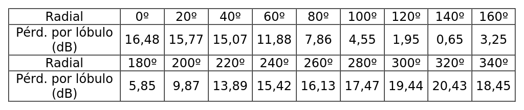 - Diagrama de radiación horizontal de acuerdo a la siguiente tabla: