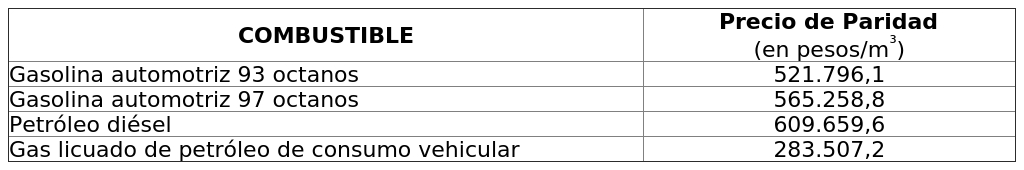 FIJA PRECIOS DE PARIDAD PARA COMBUSTIBLES DERIVADOS DEL PETRÓLEO