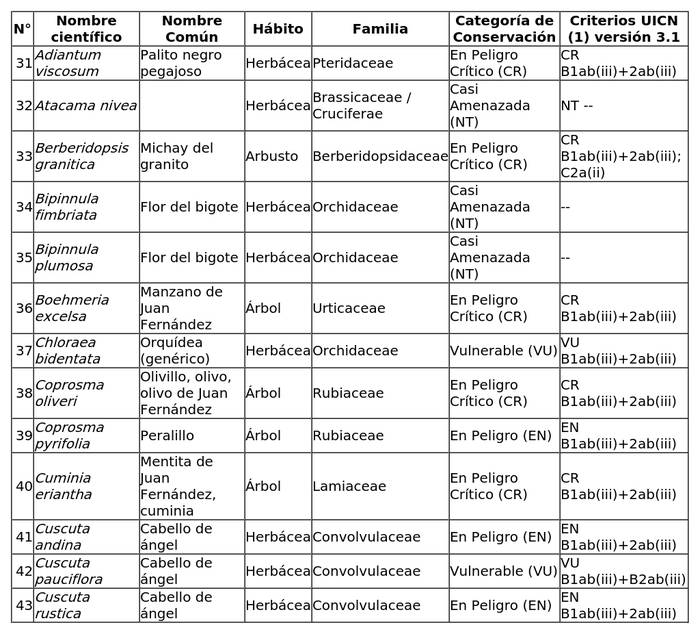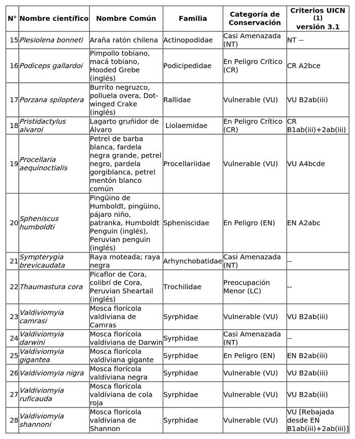 (1) Se utilizan criterios UICN (Versión 3.1) según lo dispuesto en el artículo 37 de la ley 19.300, sobre Bases Generales del Medio Ambiente.