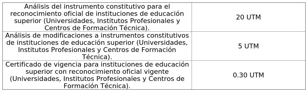Artículo 1°: Fíjanse, desde el 1 de enero de 2026, los siguientes aranceles de servicios que presta o certificaciones que entrega la Subsecretaría de Educación Superior, expresados en Unidades Tributarias Mensuales (UTM) que incluyen el Impuesto al Valor Agregado (IVA), con motivo de: