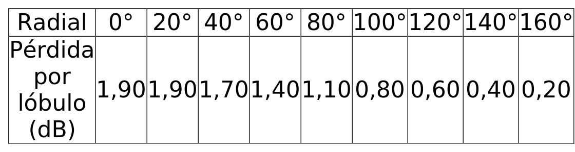 - Ganancia antena : 2,15 dBd de ganancia máxima.