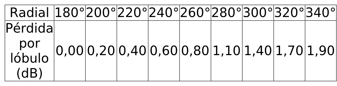 - Diagrama de radiación horizontal, de acuerdo a la siguiente tabla: