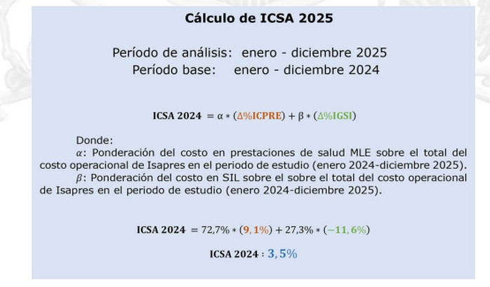e) El cálculo del ICSA 2025 obtenido de la variación conjunta del costo en prestaciones de salud y del costo en Subsidios de Incapacidad Laboral de la Isapre.