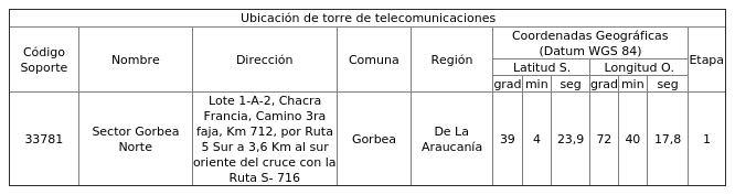 1. Autorízase a la concesionaria para instalar, operar y explotar una (1) torre de telecomunicaciones, destinada a soportar sistemas radiantes, según se indica a continuación: