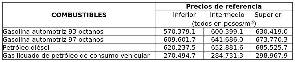 DETERMINA PRECIOS DE REFERENCIA PARA COMBUSTIBLES DERIVADOS DEL PETRÓLEO