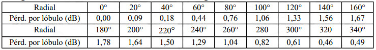 - Pérdidas en cables, : 1,1 dB.