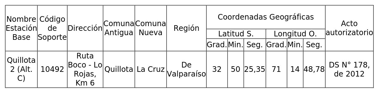 2. Autorízase a la concesionaria para rectificar la comuna de una (1) Estación Base, según se indica a continuación: