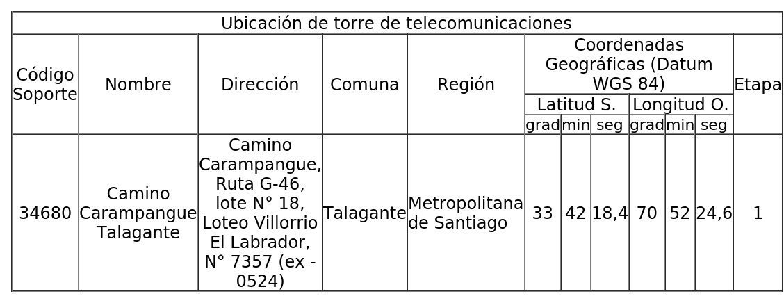 1. Autorízase a la concesionaria para instalar, operar y explotar una (1) torre de telecomunicaciones, destinada a soportar sistemas radiantes, según se indica a continuación: