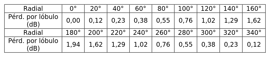 - Diagrama de radiación horizontal de acuerdo a la siguiente tabla: